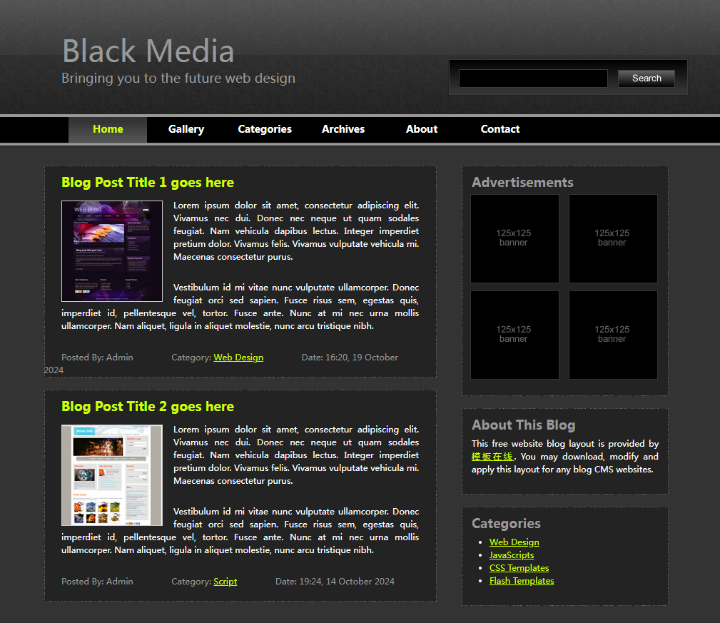 黑色媒体网站模板¥25.00