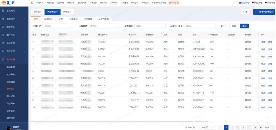 高空车,叉车,挖机租赁系统(包含资产管理,配件管理,应收对账等等)